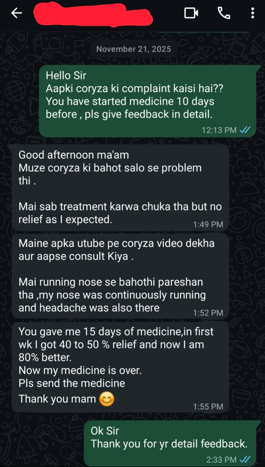 Real-time feedback shared during treatment, reflecting comfort, reassurance, and recovery under individualized care.